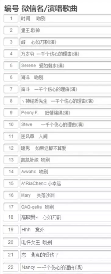 (請(qǐng)按照所錄點(diǎn)唱機(jī)的編號(hào)順序找自己的對(duì)應(yīng)編號(hào))